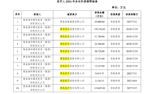 值得着重的是,比年来青岛城投已为青岛航空作念了大批的贷款担保。适度2024年末,青岛城投为青岛航空作念贷款担保的担保余额约为113.58亿元,占其悉数对外担保的89.65%。当今,青岛城投自己也堕入举新债还宿债的境地,拟再次刊行公司债券东谈主民币102亿元,用于偿还到期债券本金。而青岛航空多架飞机因发动机调回问题“趴窝”机场,损毁约三分之一运力,为其事迹雪上加霜。