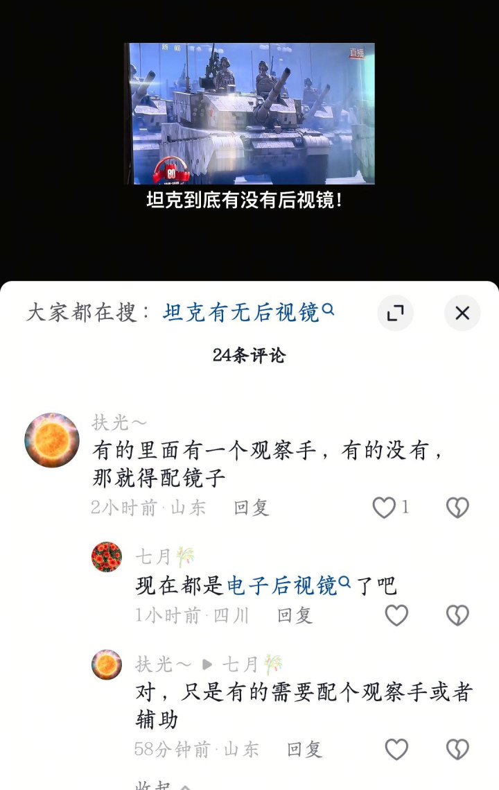 效能寰宇得到谜底:坦克是不错有后视镜的,事实和杜江说的相通。