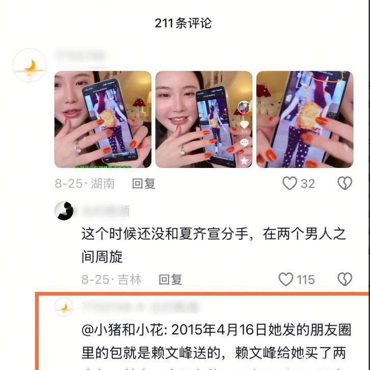 而楚铃晒出赖文峰送的包包,是2015年4月。