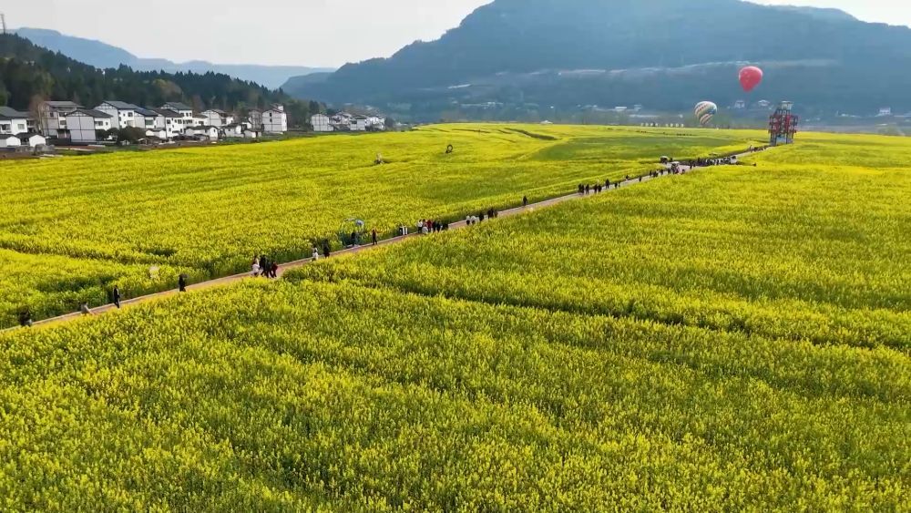 广元市朝天区羊木镇东山村千亩油菜花参加盛花期,当地推出花田暖锅、烤肉,举办乡村音乐会、特质集市,打造“赏花+好意思食+文旅+奢华”新业态。